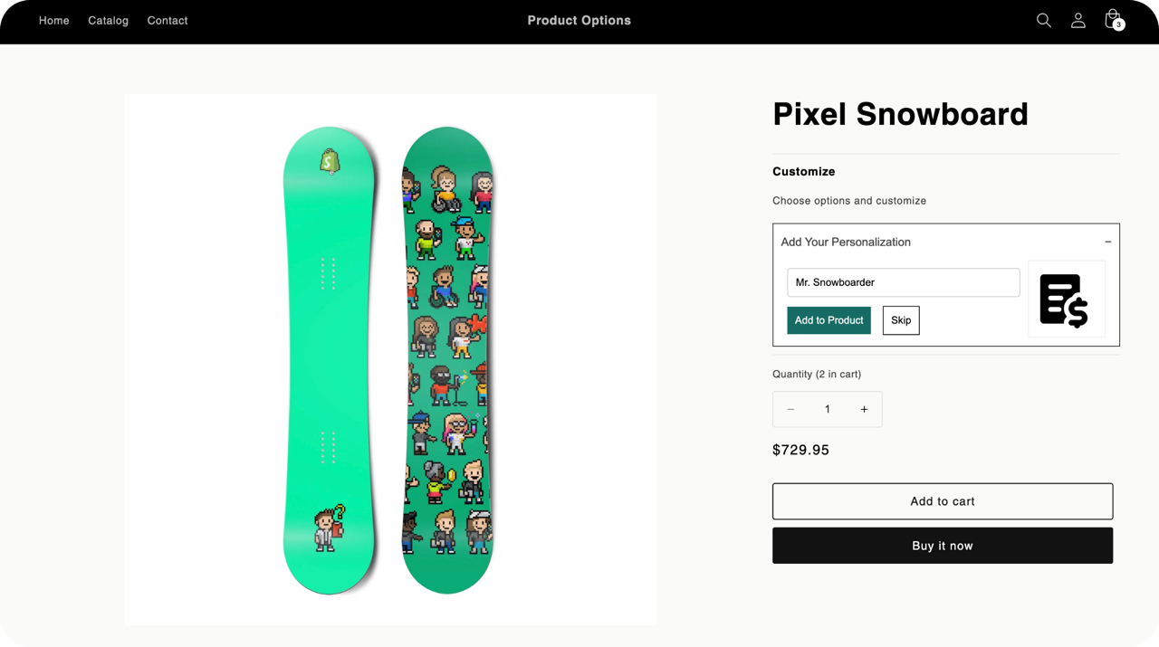 Charge extra for upgrades like engraving, rush processing, or gift wrapping. Every add-on price ties directly to Shopify variants with real-time inventory tracking, so you never oversell.